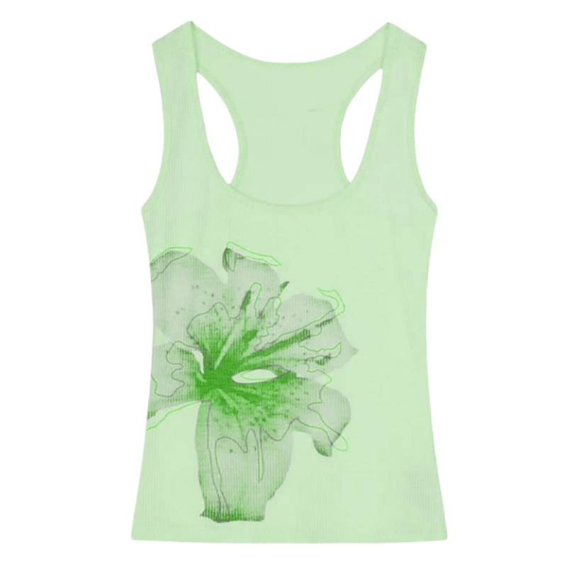 - Featuring a delicate blue orchid design, this racerback tank top is perfect for layering or wearing alone on casual outings and summer adventures.